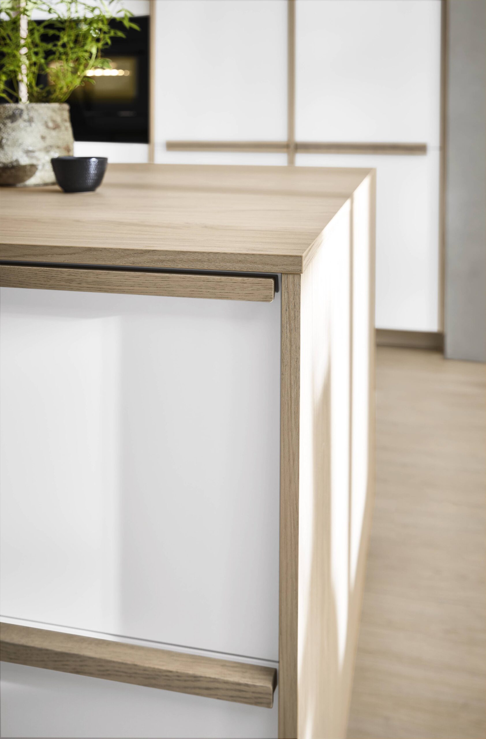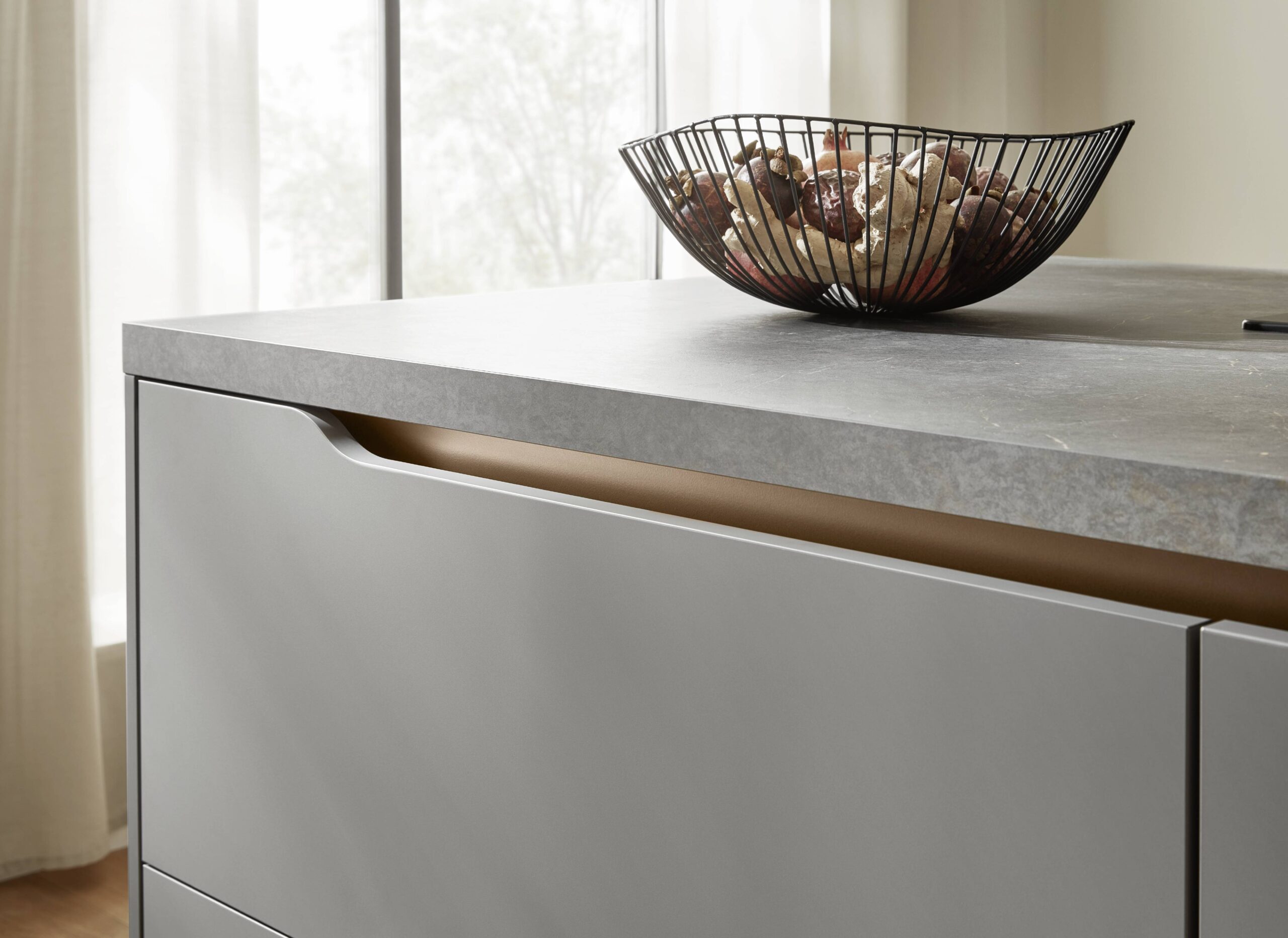 El nuevo concepto LINE One para cocinas sin tiradores combina la variedad de diseño LINE N con la práctica tecnología push-to-open del sistema de cajones nBOX. Las claras líneas horizontales confieren a la cocina un aspecto tranquilo y armonioso.
