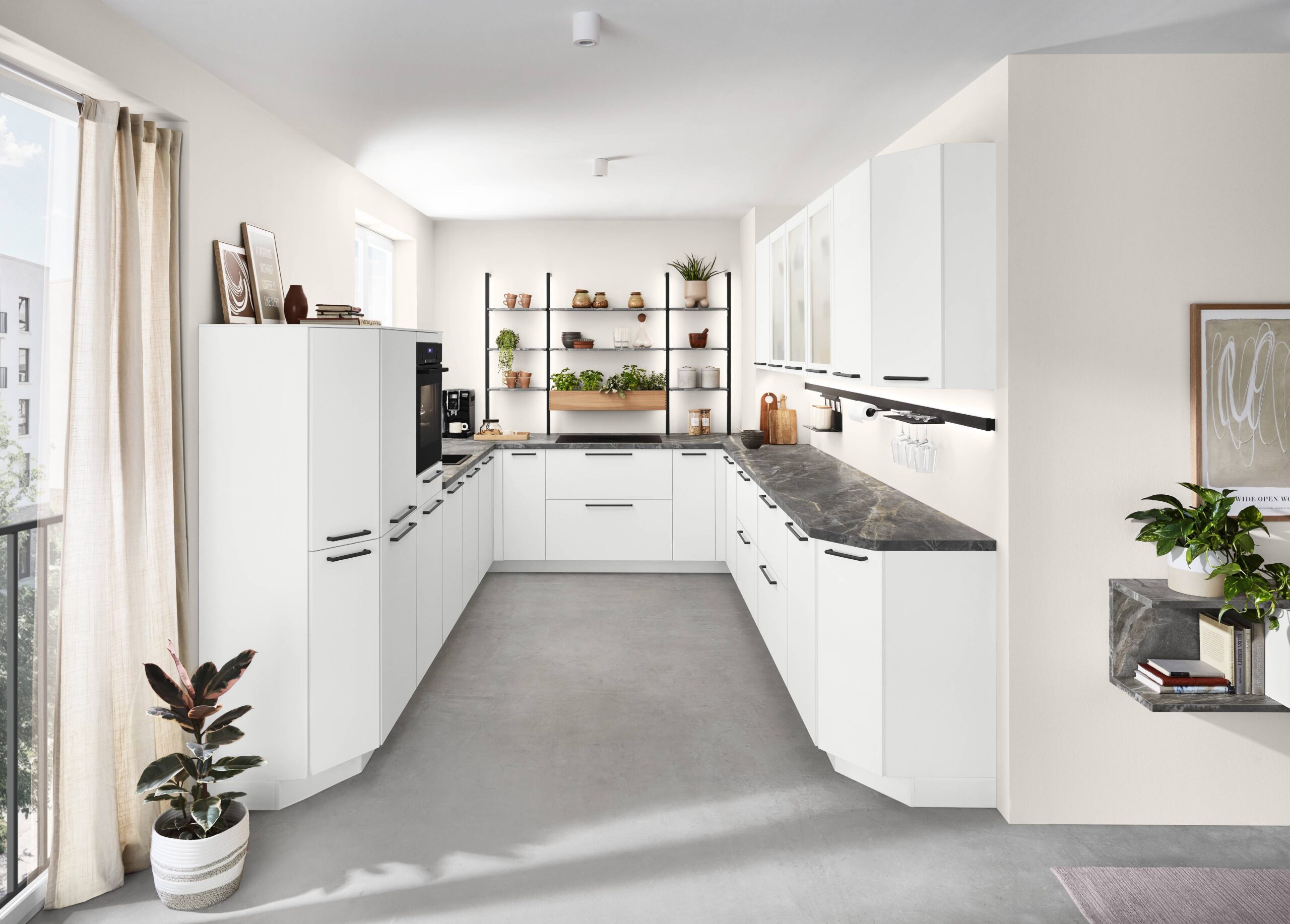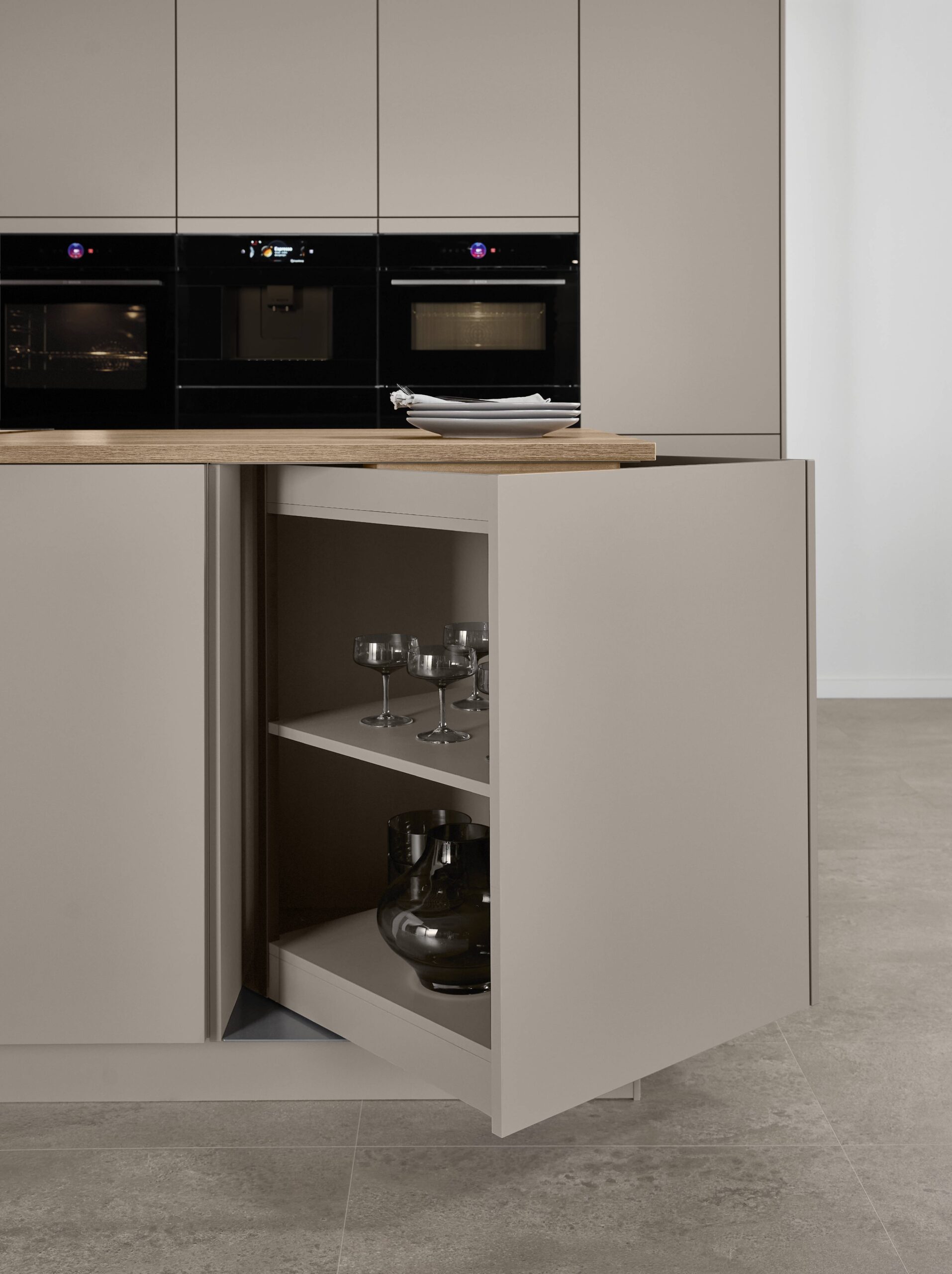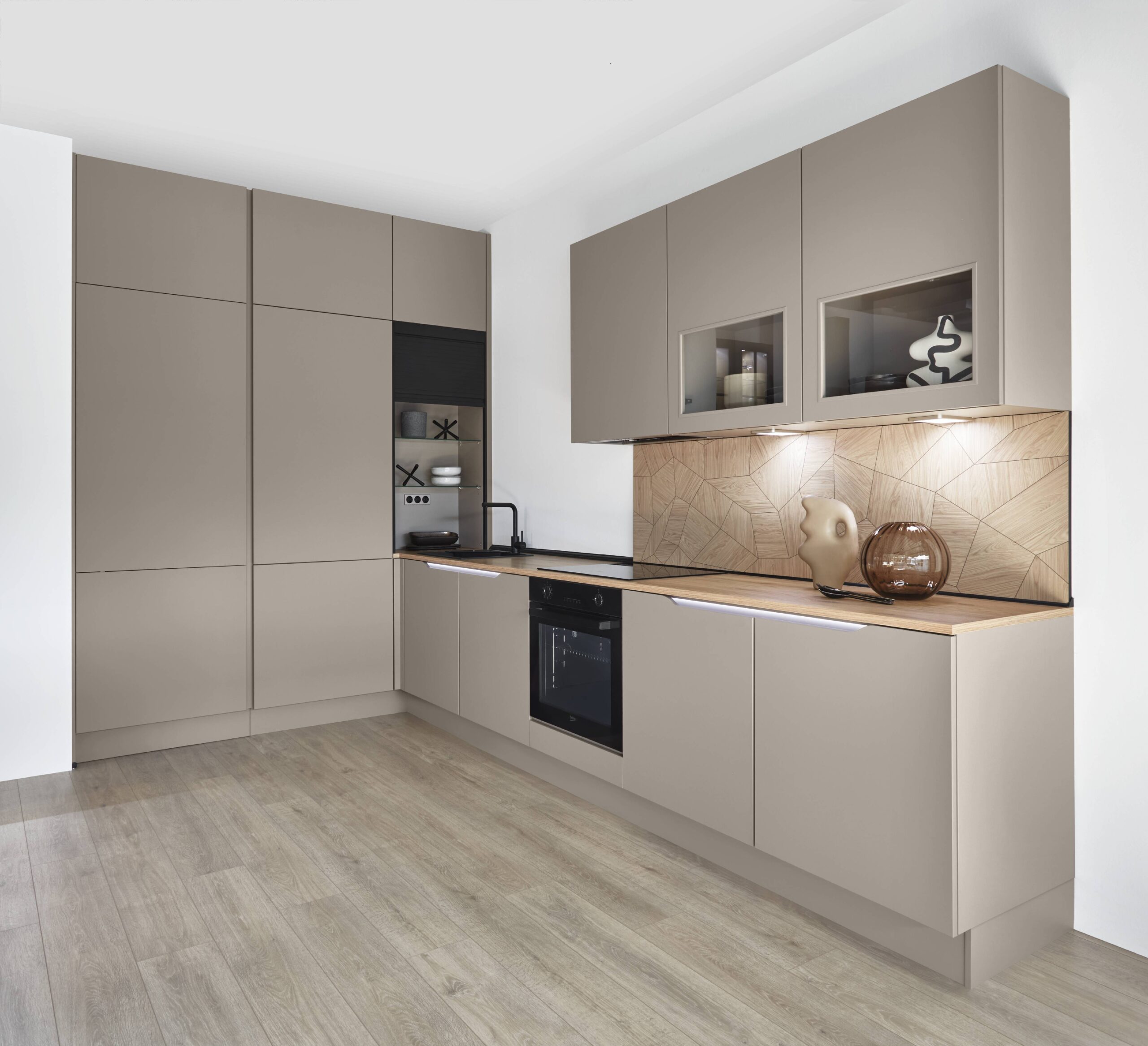 En habitaciones estrechas o nichos de cocina, se necesitan soluciones inteligentes de almacenamiento que abran la habitación visualmente y la aprovechen funcionalmente al mismo tiempo. Los armarios diagonales con carcasas biseladas consiguen precisamente eso: hacen que las zonas estrechas parezcan más abiertas y crean visualmente más espacio.