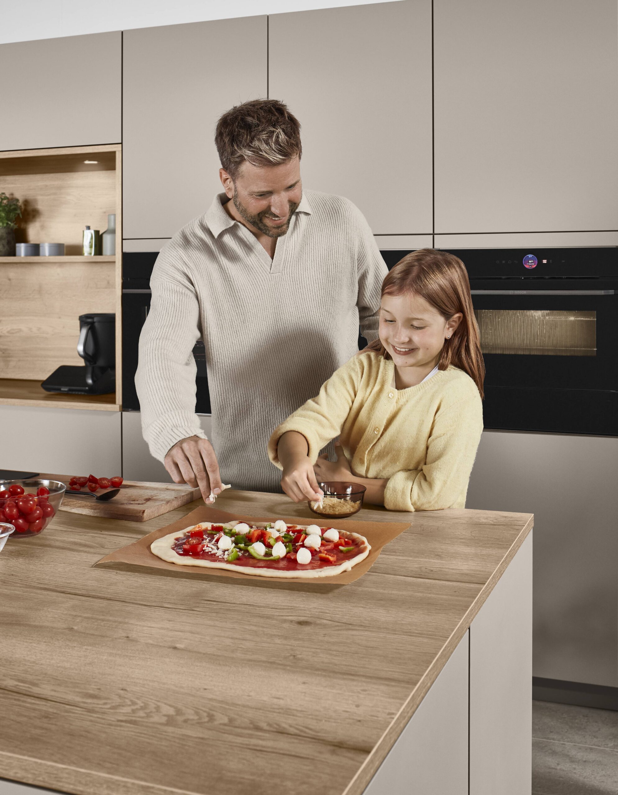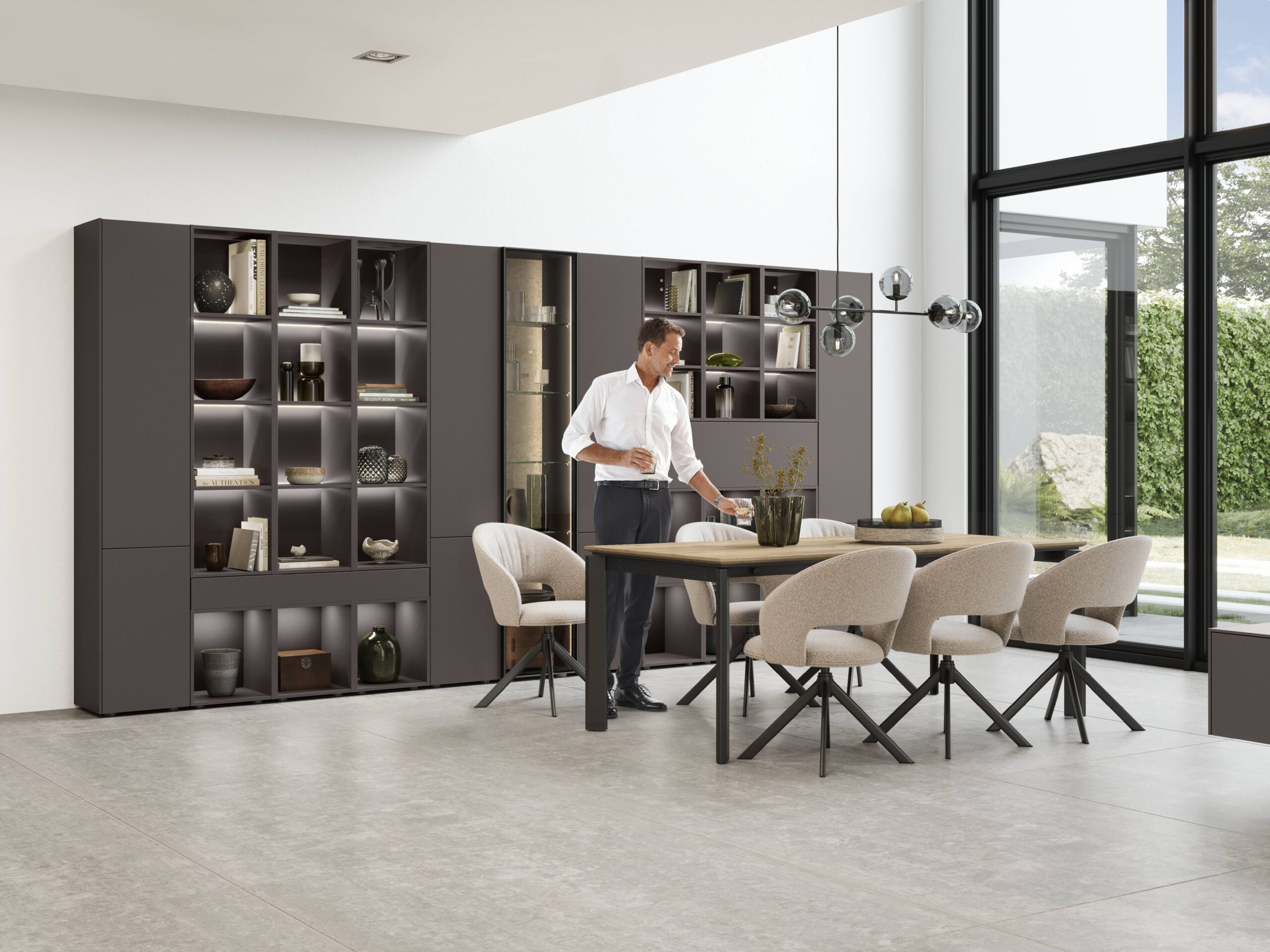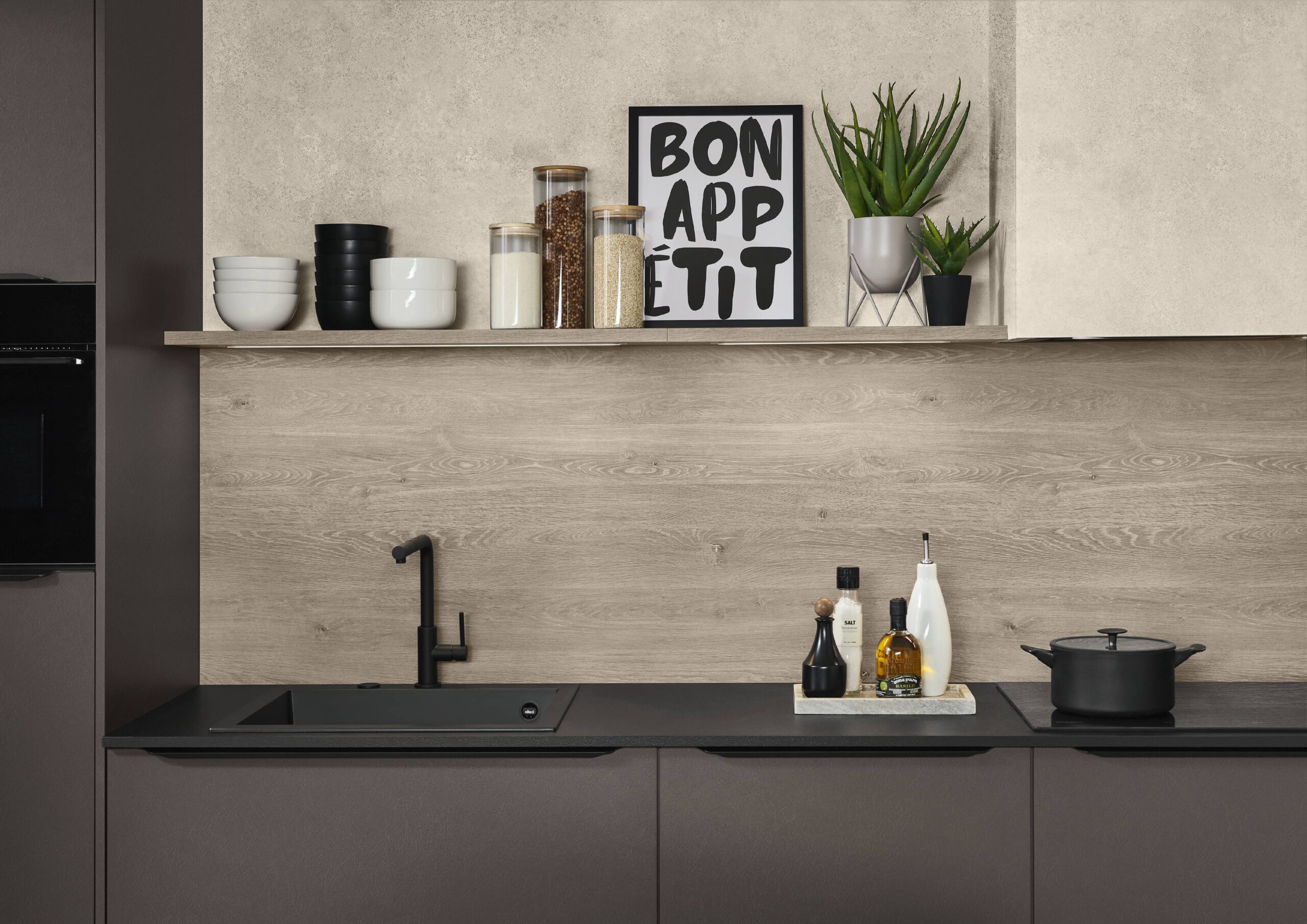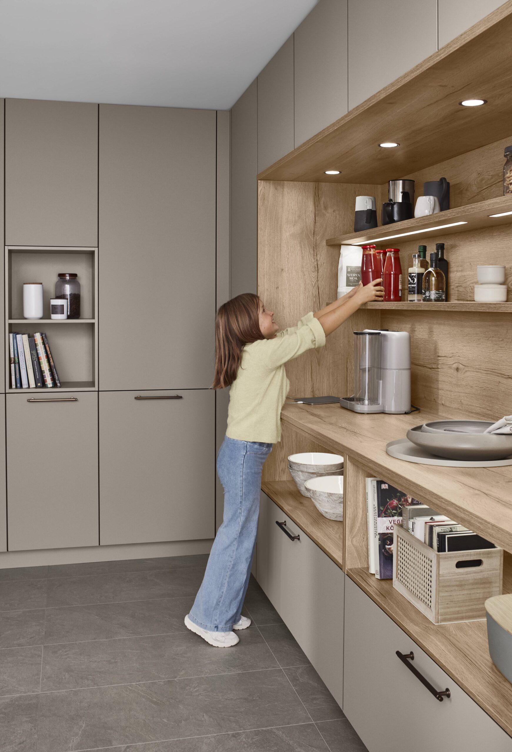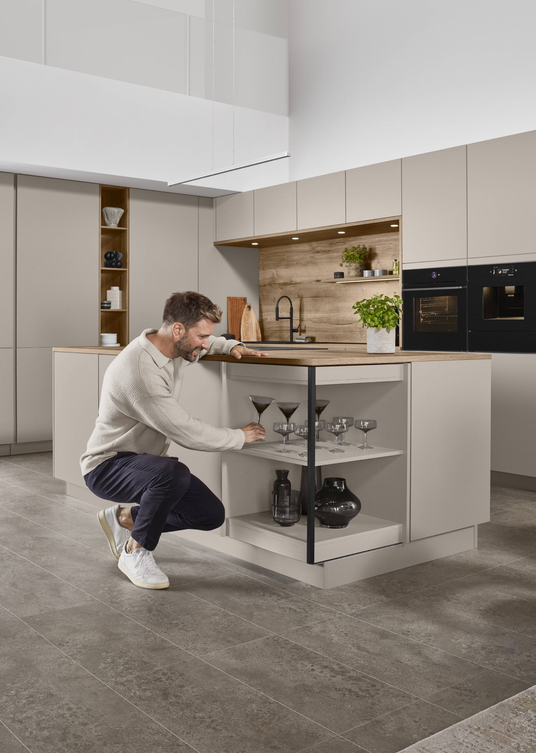 La comodidad moderna se une al espíritu de la época. El cálido color terroso macchiato crea un ambiente tranquilo y elegante y atrae a las personas con especial afinidad por el diseño. En combinación con una decoración de madera clara, crea un ambiente sofisticado de cocina y salón.