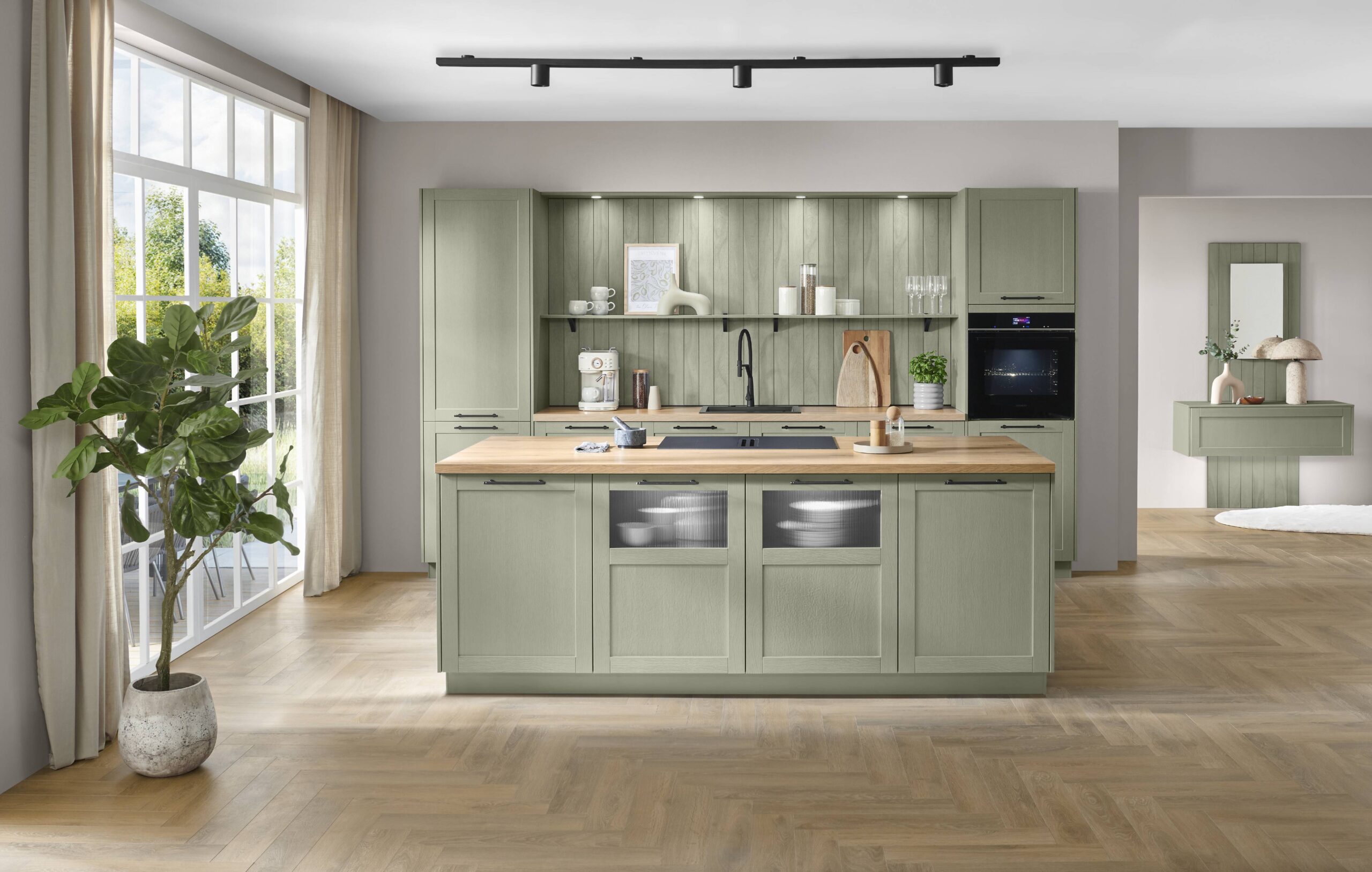 ¡El verde sigue siendo tendencia! Este versátil tono puede combinarse perfectamente con tonos de madera claros y oscuros.